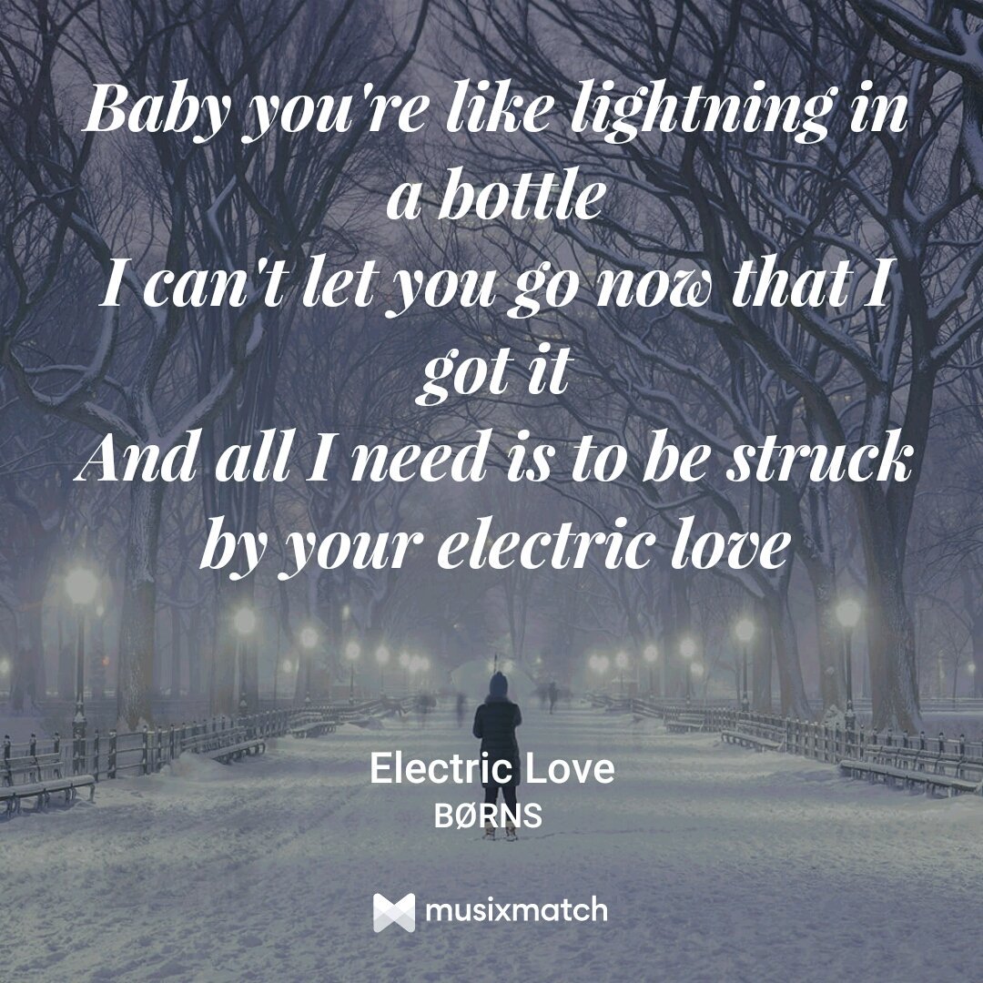 Baby youre like lightning in a bottle I cant let you go now that I got it All I need is to be struck by your electric love Baby your electric love electric love. In the eye of a storm no one can see. Candy shes sweet like candy in my veins Baby Im dying for another taste. And all I need is to be struck. Apr 16 2015 - An evening well spent. I cant let you go now that I got it. Video clip and lyrics Electric Love BØrns Cover by Madilyn Bailey. D A E And every night my mind is running around her D A Thunders getting louder and louder Chorus. BØRNS - Electric Love Lyrics 8D AUDIO baby youre like lightning in a bottle If you are enjoying this video a sub to the channel would mean a.